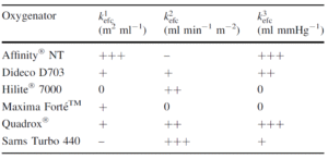 Comparison of the examined HFMOs on the basis of their efficacy factors for a blood flow rate of 5 L/min